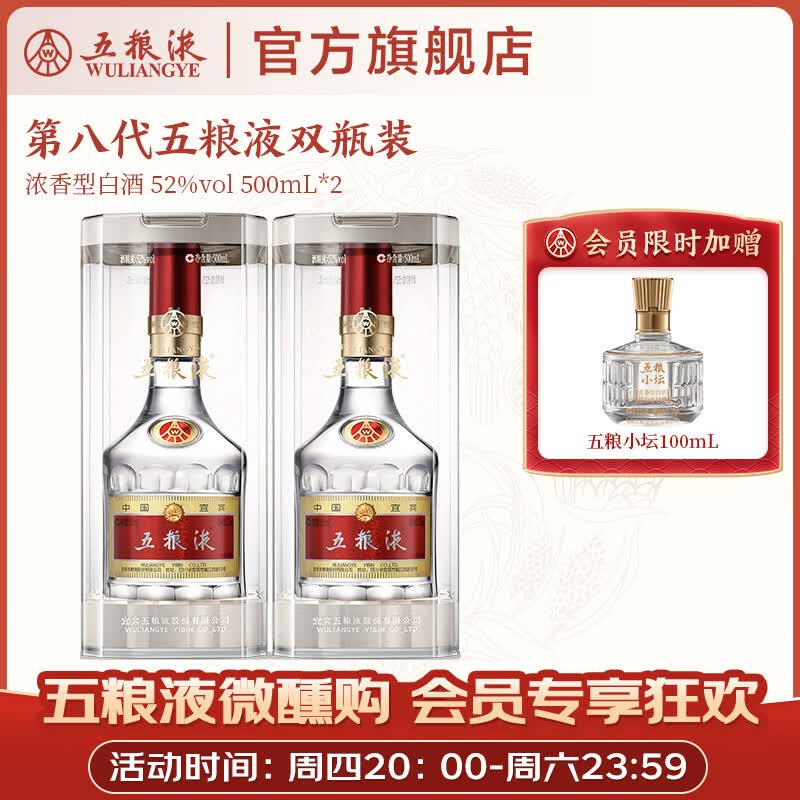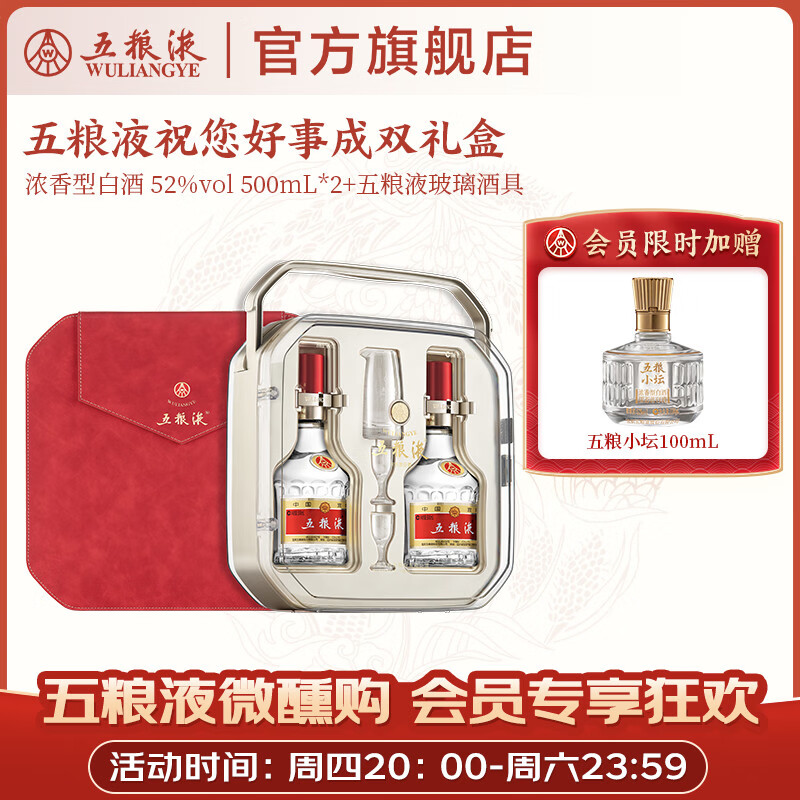 五粮液【官方旗舰】第八代五粮液祝您好事成双礼盒 52度 500mL 2瓶