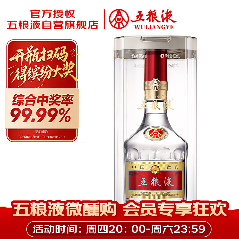 五粮液 普五八代 浓香型白酒 52度 500ml 单瓶 官方授权 酒厂直供